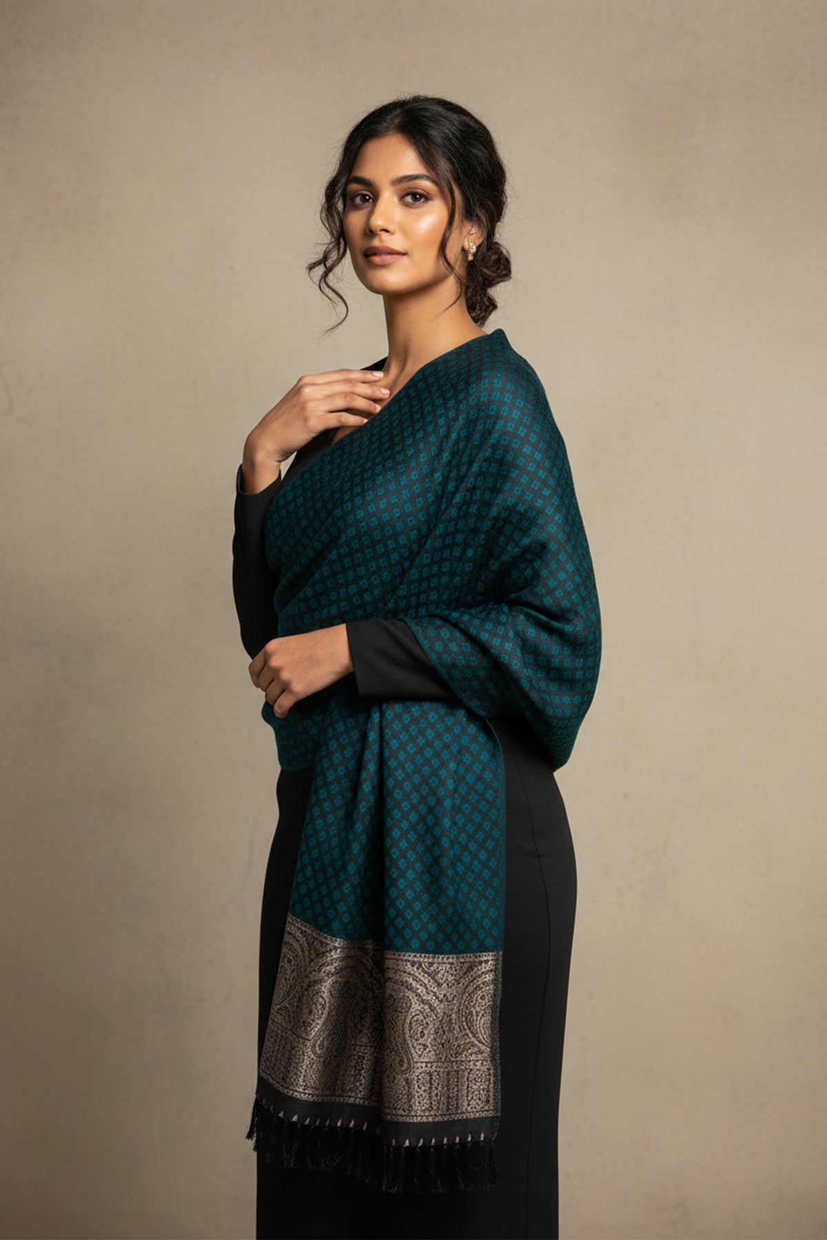 Elevate your style with this Modern Palla Stole featuring exquisite Kani and Jamawar weaving techniques. Designed as a versatile unisex accessory, its dual design balances traditional craftsmanship with contemporary elegance. Perfect for adding a refined touch to any outfit while offering comfort and warmth throughout the day.