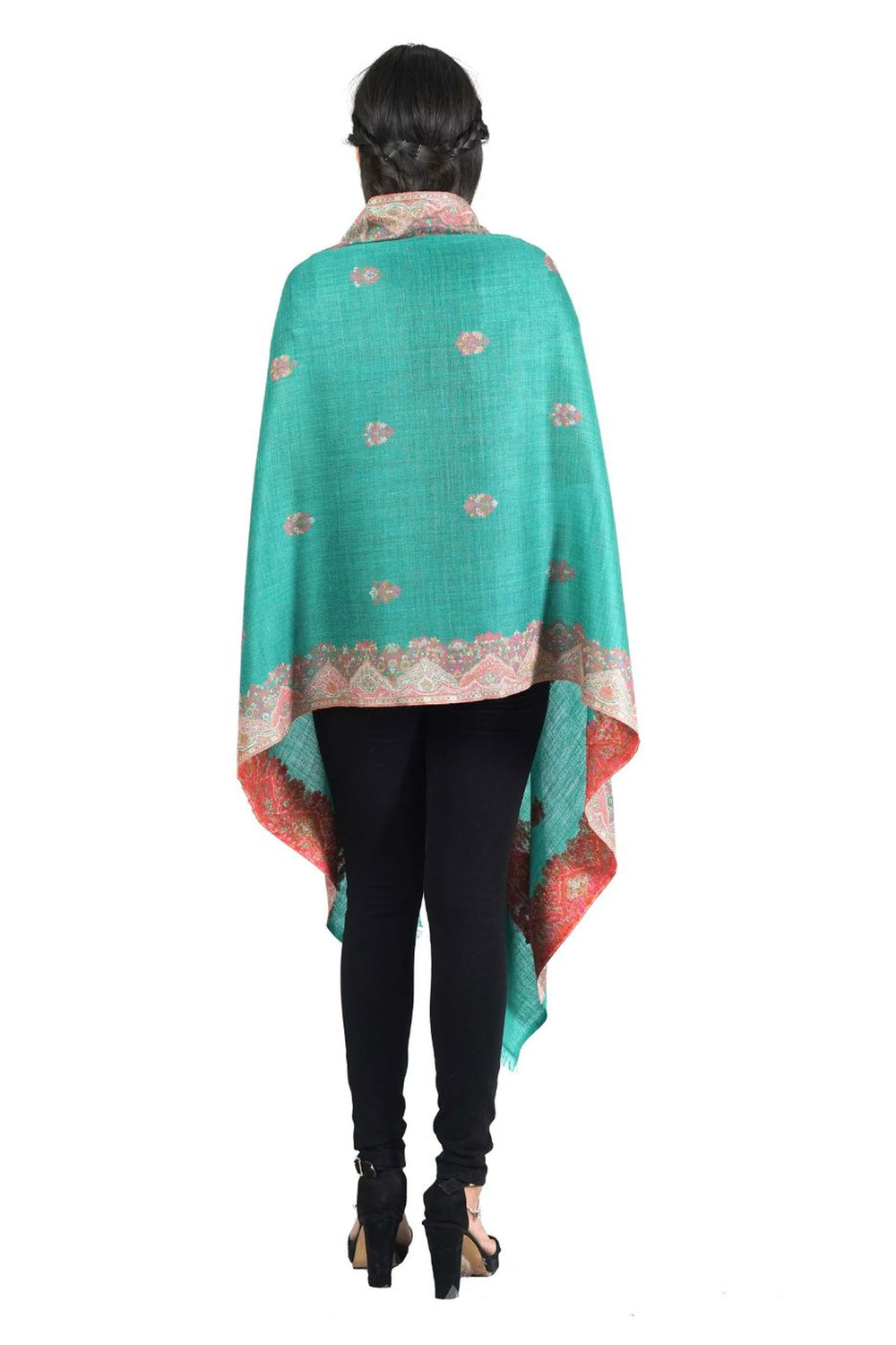 This women's stole showcases the traditional Kani weaving technique, featuring a melange woven border complemented by elegant booti designs. Crafted for both warmth and refined style, it reflects expert craftsmanship and timeless appeal. The intricate patterns enhance its visual depth, making it a sophisticated accessory for elevating any outfit.